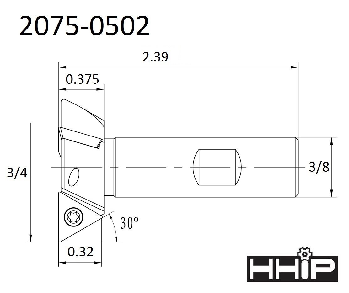 3/4 INCH (3/8 SHANK 2-FLT) 60 DEG INDEXABLE DOVETAIL CUTTER (SKU: 2075-0502)