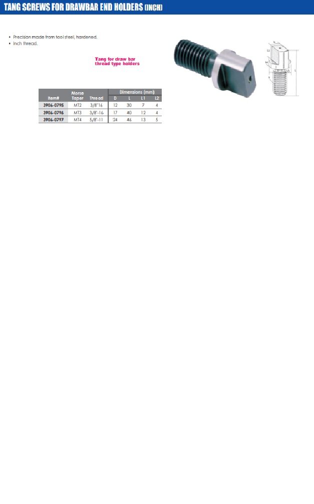 3/8-16 TANG SCREW FOR MT3 DRAWBAR END HOLDERS (3906-0796)3/8-16 TANG SCREW FOR MT3 DRAWBAR END HOLDERS (3906-0796)
