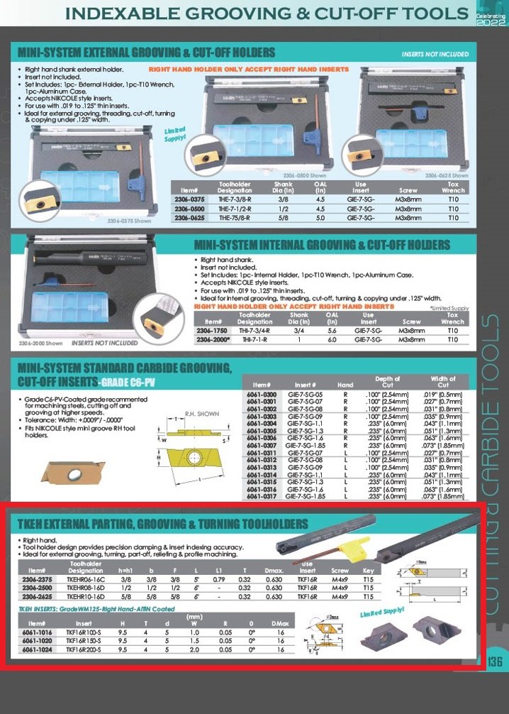 - Use with TKF16R Inserts 6061,1016, 6061-1020 or 6061-1024