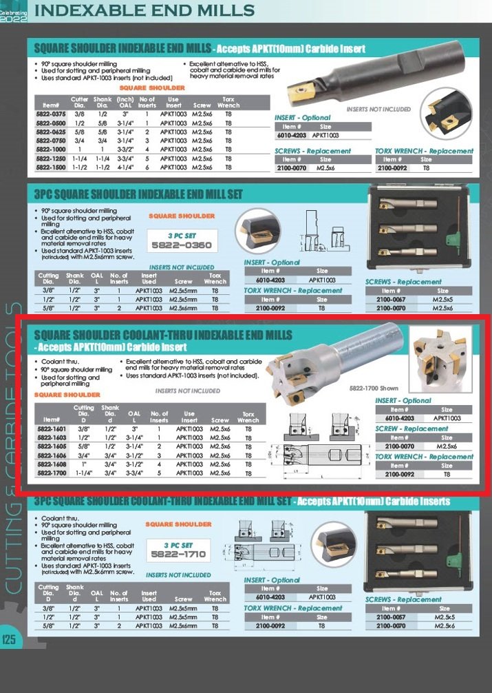 3/8″ Square Shoulder Coolant-Thru Indexable End Mill (5822-1601)