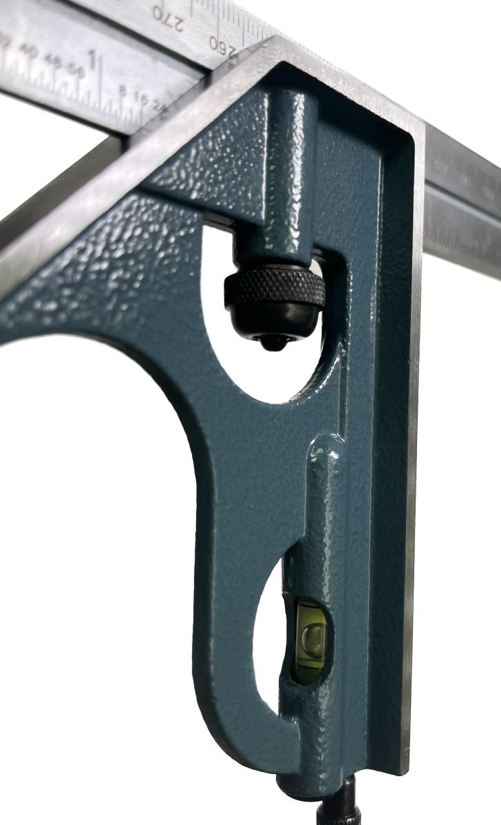 - Square head has a level and a scriber point.