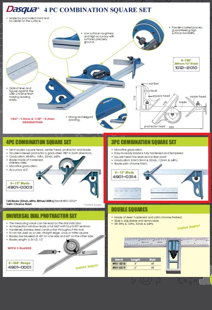3 PIECE 12″ COMBINATION SQUARE SET (4901-0314) (SKU: 4901-0314)