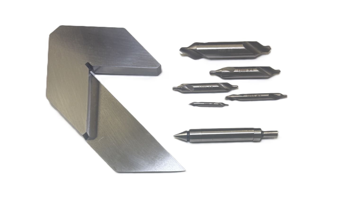 3 Piece Machinist Set Center Square, Drill Set, Edge & Center Finder This set includes a 3″ Center Square, an Edge & Center Finder, and a 5 Piece HSS Center Drill Set. The center square rapidly locates the exact center of round, square, and octagonal parts. The edge & center finder has a 3/8″ shank with a 0.200″ tip, is hardened and ground all over and has an accuracy to 0.0002″. The high speed steel center drills have a 60 degree countersink angle that fits all standard centers, is perfect for centering work ends and includes sizes #1–#5. This is a time-saving kit for layout, centering, and spindle locating – essential for machinists and toolmakers. Everything you need for accurate layout and fast setups in one bundle. Built from precision-ground, hardened tool steel, this set improves accuracy and reduces setup time in machining operations.