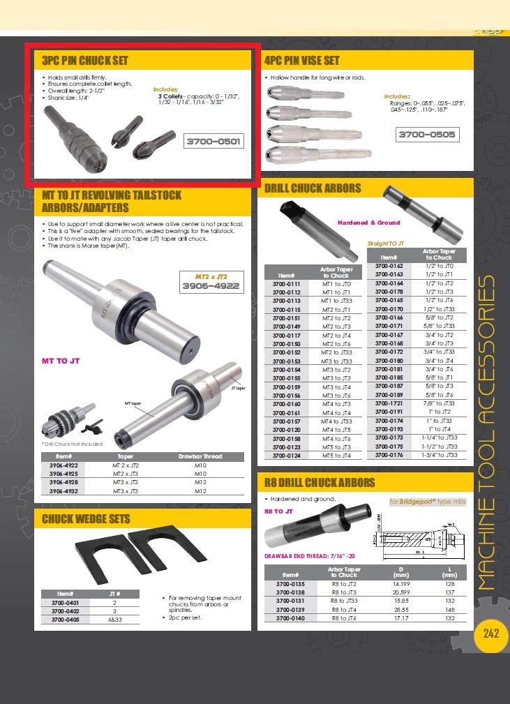 3 PIECE PIN CHUCK SET (3700-0501). Key features: 3 Piece Pin Chuck Set; Holds small drills, rods and wire taps firmly..