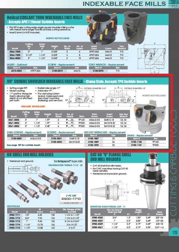 3 X 1″ Bore 90 Degree Square Nickel Coated Indexable Face Mill