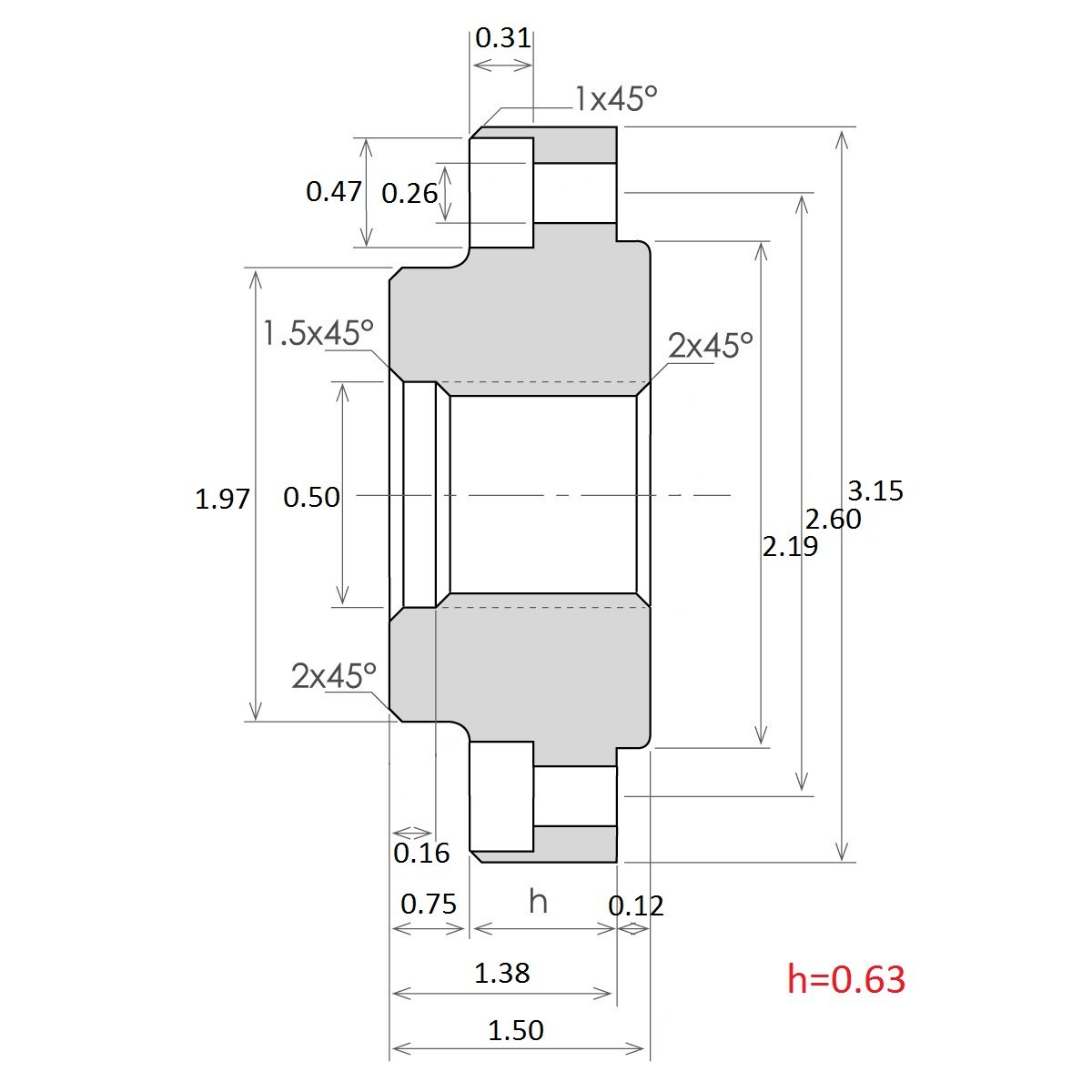 - Bolt circle is 2.6″.