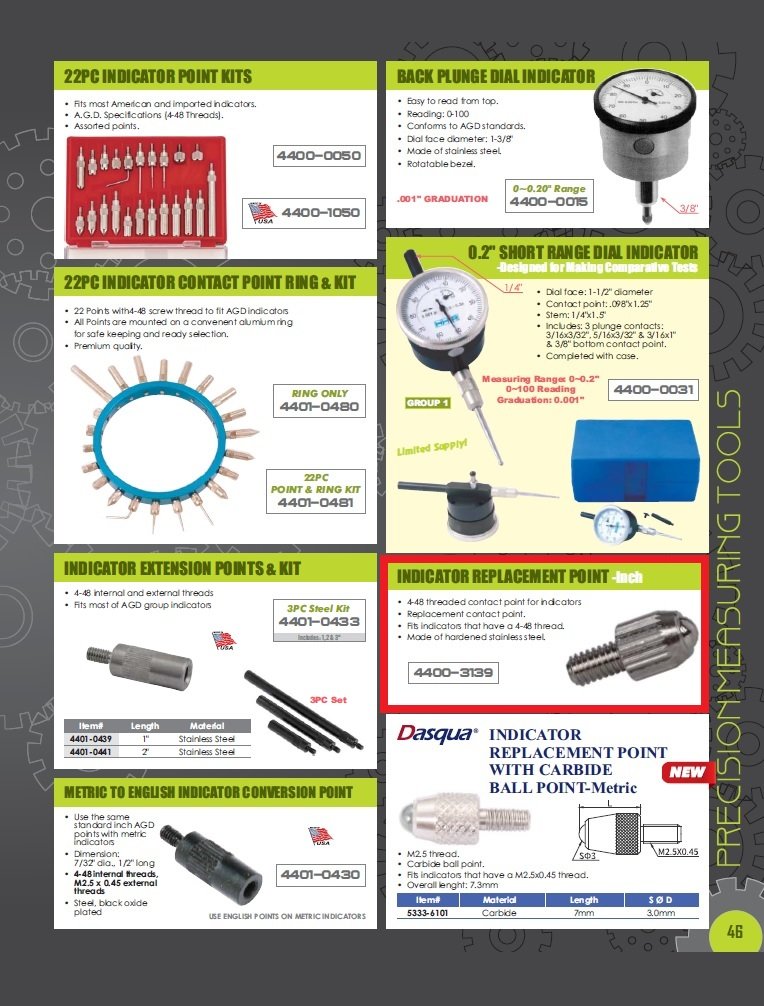 - 4-48 Threaded Contact Point for Indicators