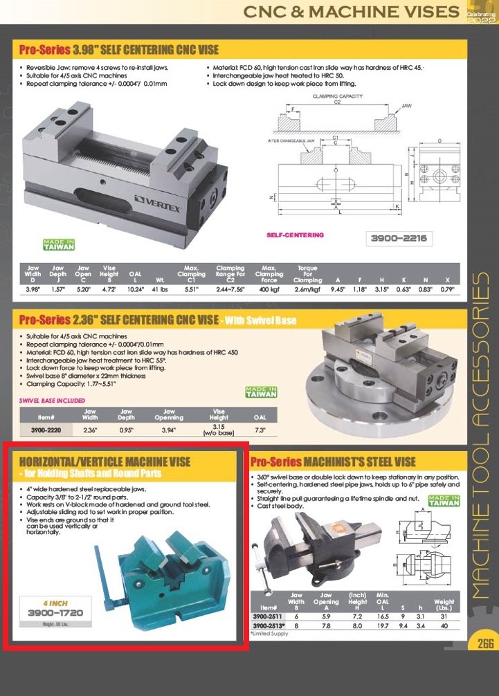 4″ HORIZONTAL/VERTICAL MACHINE VISE – HOLDS SHAFTS & ROUND PARTS (3900-1720)