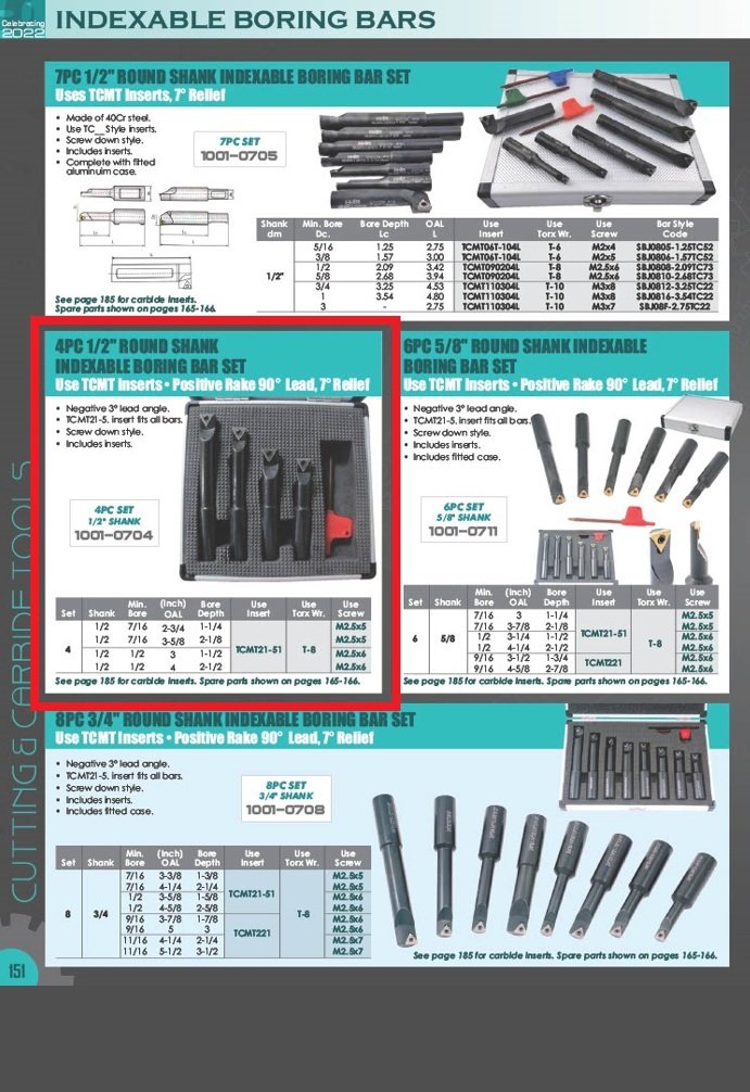4 PIECE 1/2 INCH ROUND SHANK INDEXABLE BORING BAR SET (SKU: 1001-0704)