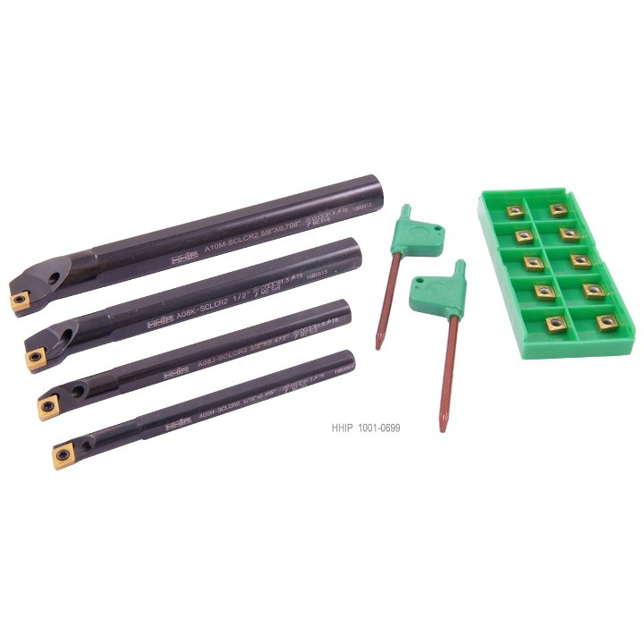 4 PIECE SCLCR2 INDEX BORING BAR SET WITH COOLANT THRU & 10 INSERTS (5/16-3/8-1/2&5/8 INCH) (SKU: 1001-0699)