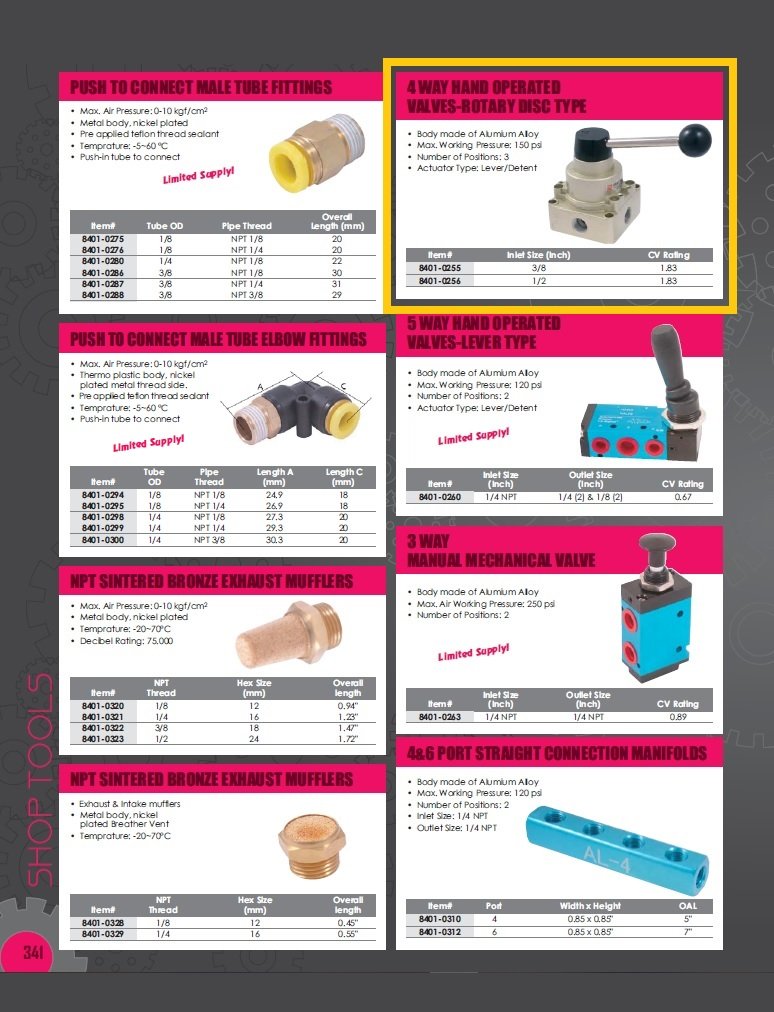 4-WAY HAND OPERATED ROTARY DISC TYPE VALVE WITH 3/8 NPT INLET (8401-0255) (SKU: 8401-0255)