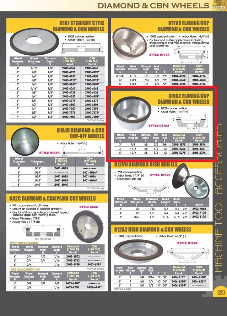 4 X 1-1/4 X 1-1/4″ D11A2 FLARING CUP DIAMOND WHEEL (2405-4250) (SKU: 2405-4250)