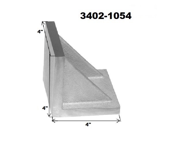 4 X 4 X 4″ GROUND ANGLE PLATE WEBBED END (3402-1054). Key features: 4 X 4 X 4″ Webbed End Ground Angle Plate; Made from high tensile cast iron that has normalized and stress relieved..