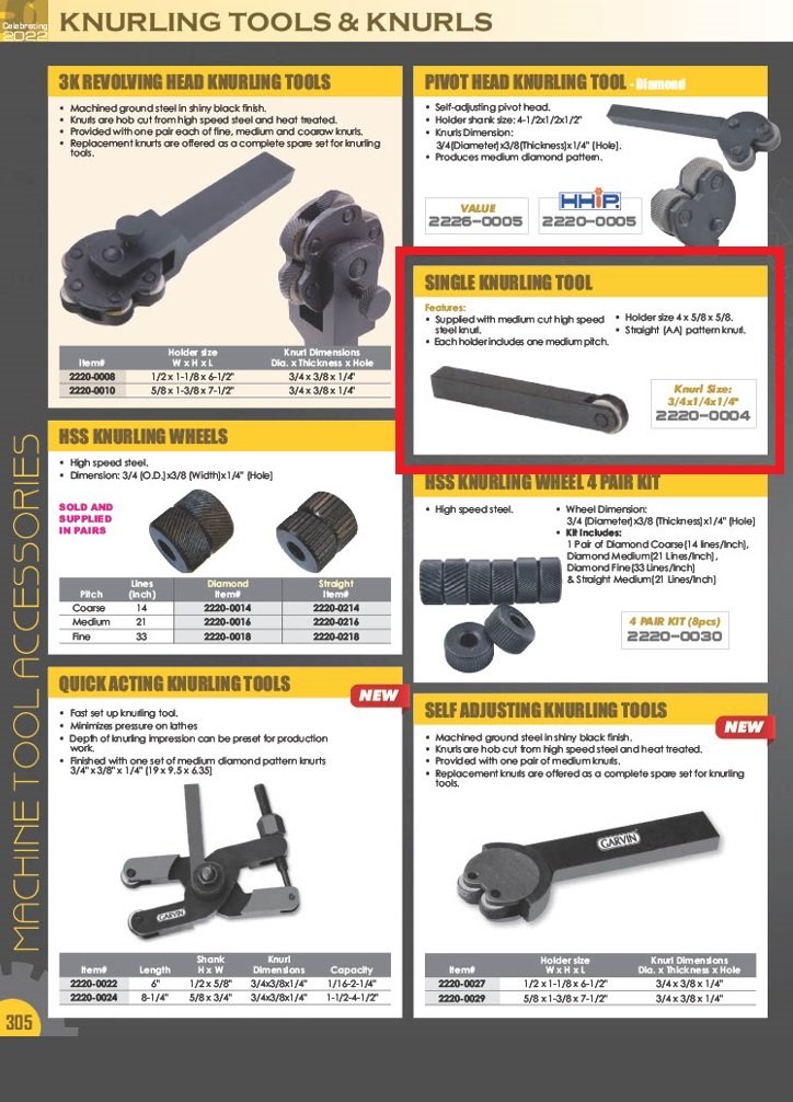 - Supplied with a medium cut high speed steel knurl.