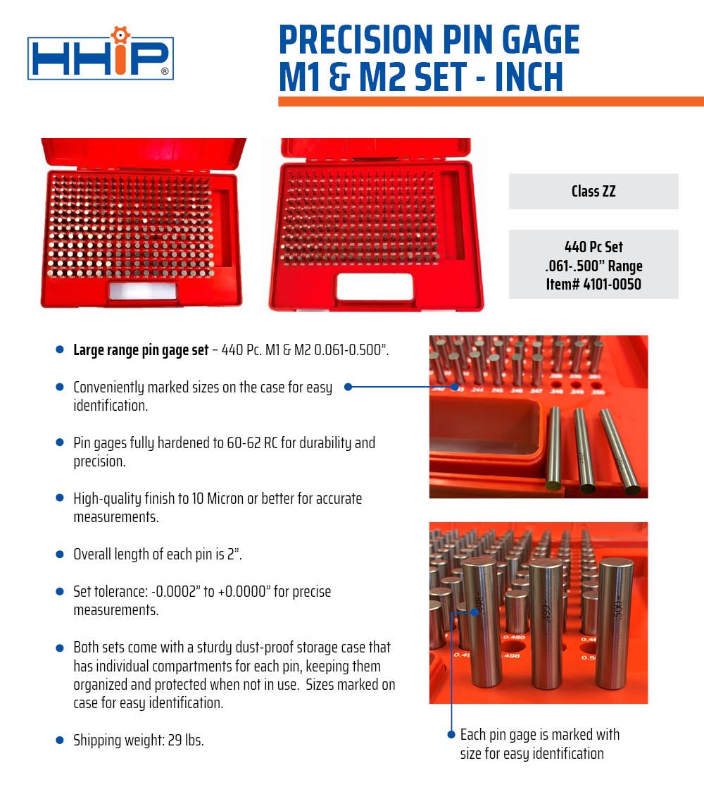 440 Piece M1 & M2 .061-.500″ Pin Gage Sets