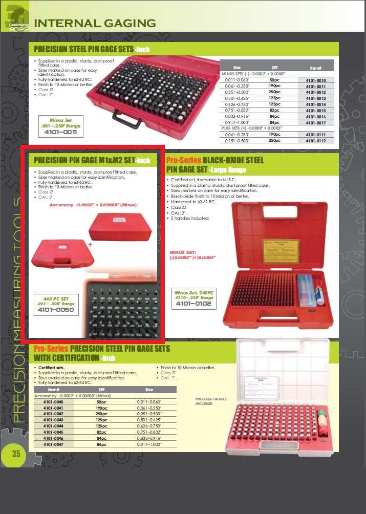 440 PIECE M1 & M2 .061-.500″ MINUS PRECISION PIN GAGE SETS (4101-0050) (SKU: 4101-0050)