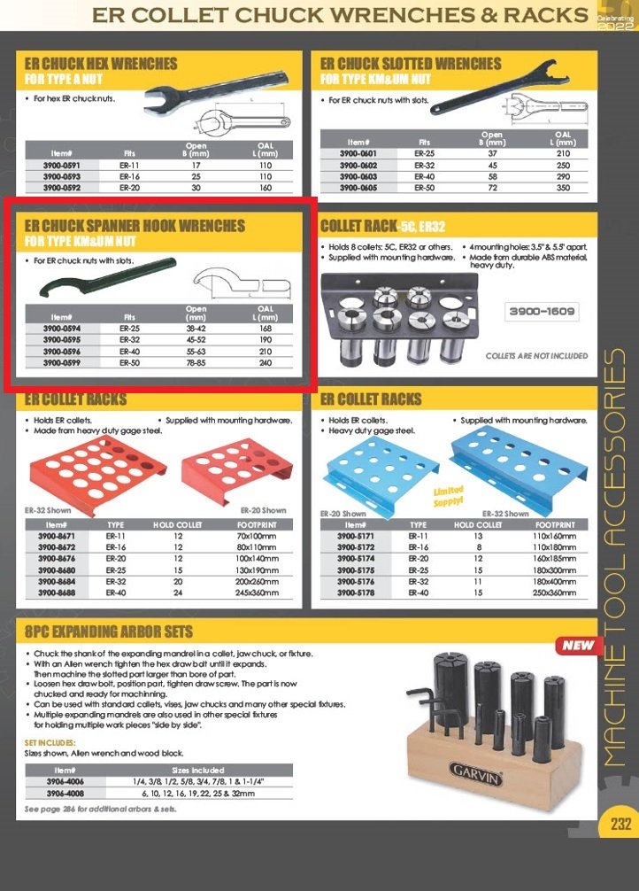 45-52MM ER-32 SPANNER HOOK WRENCH FOR ER CHUCK NUT (3900-0595) (SKU: 3900-0595)