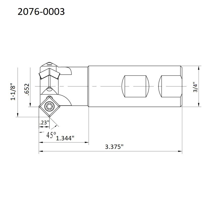 45 DEG 1-1/8 IN X 3/4 SHANK (2-INSERT POCKETS) INDEXABLE CHAMERING END MILL M4 x 8 screw — Great for job shops, maintenance teams, and serious DIY machinists. Precision-focused design for 1/8 in class setups. SKU: 2076-0003.