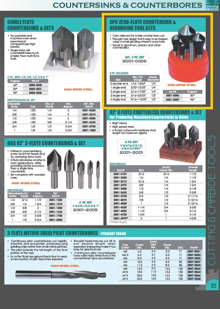 5 PIECE 82 DEGREE ZERO-FLUTE COUNTERSINK & DEBURRING TOOL SET (2001-0006)
