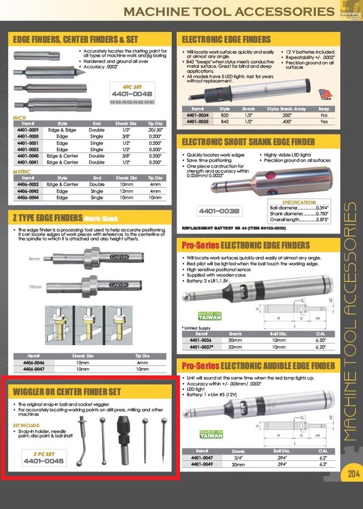 - 5 Piece Wiggler or Center Finder Set with 3/8″ Shank Body