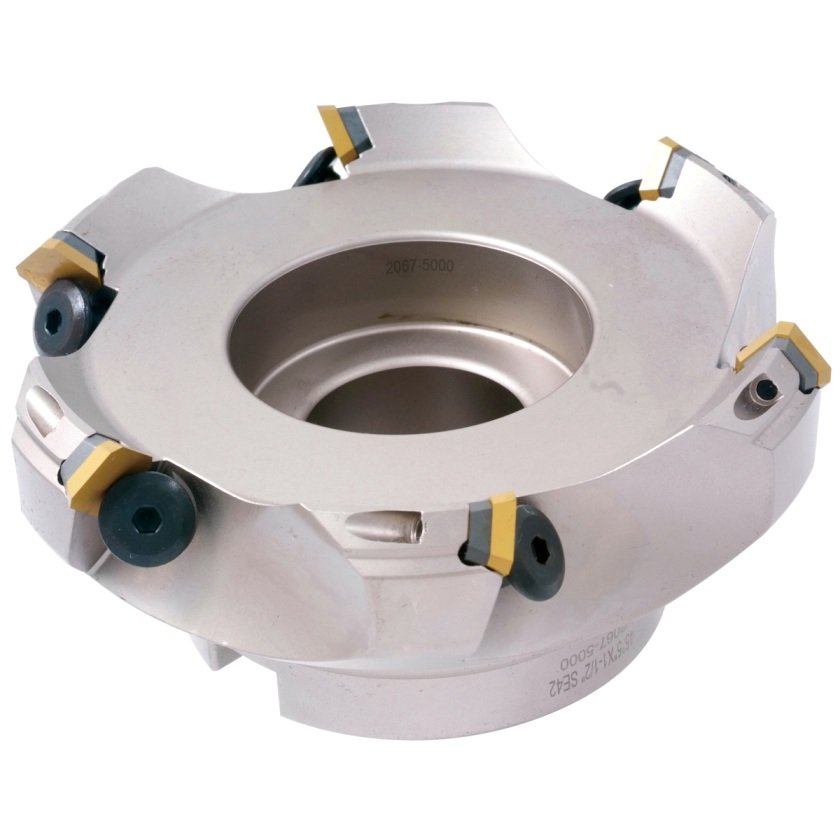- 45° lead angle allows an increase of feed rate by 50% over 90 degree face mill and also allows this face mill to used on smaller horse power mills. It accepts industry standard SEAN / SEKN / SEKR 42 insert which has a positive 20° clearance angle.