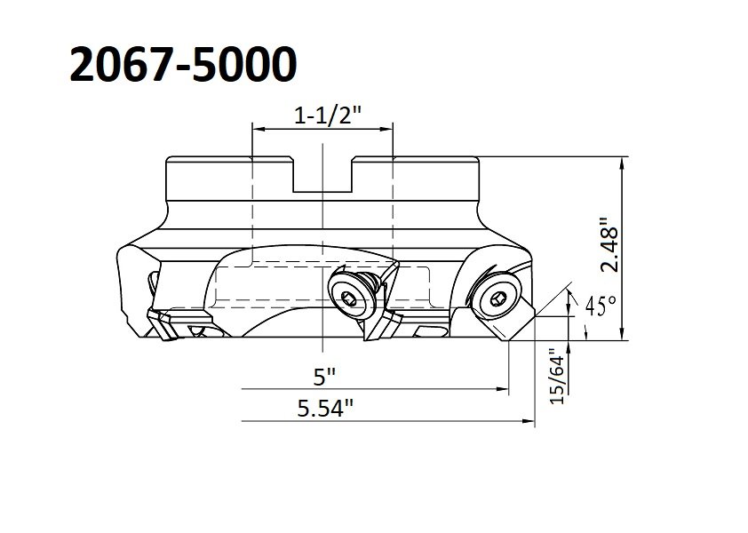 5″ X 1-1/2 BORE 45 DEGREE SE42 INDEXABLE FACE MILL WITH 6 TEETH (2067-5000) (SKU: 2067-5000)