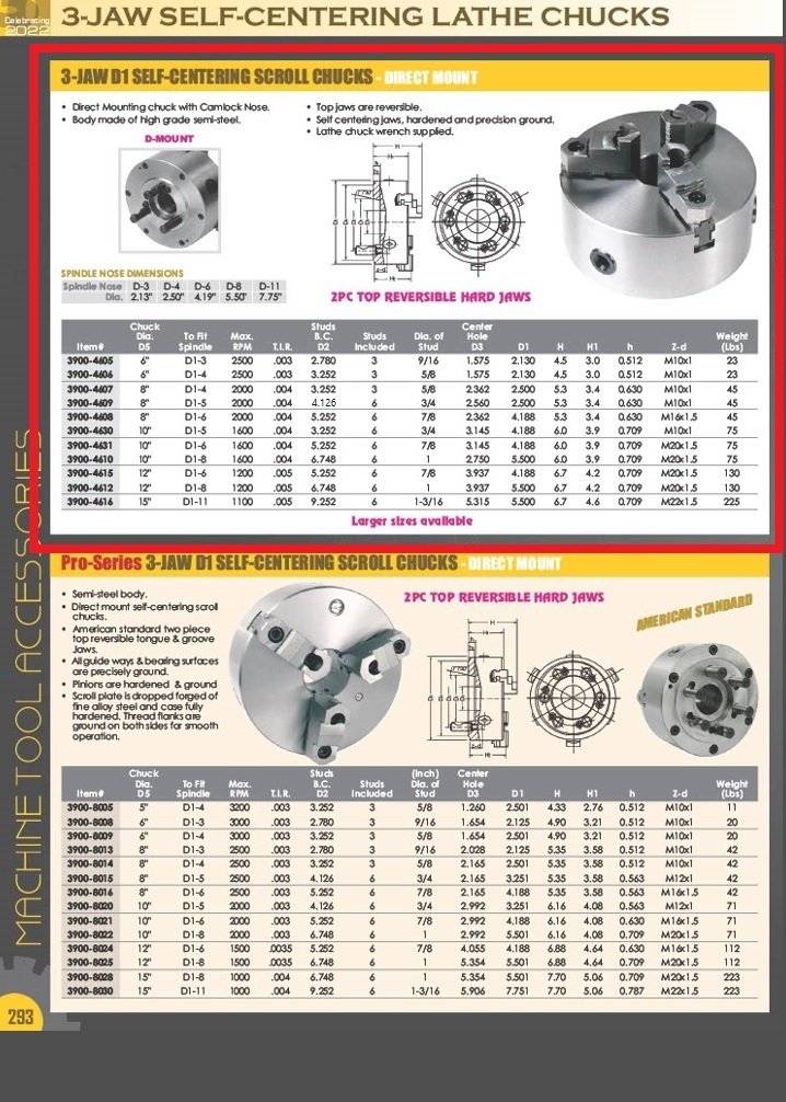 - 6″ D1-4 3-Jaw Camlock Lathe Chuck