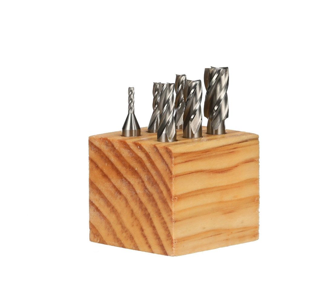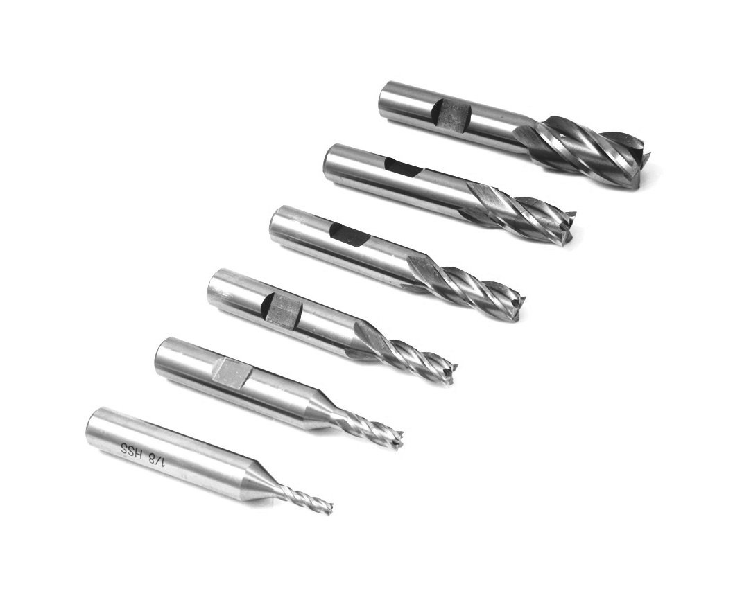 6 PIECE 4 FLUTE HIGH SPEED STEEL END MILL SET WITH 3/8″ SHANK (8000-0002)