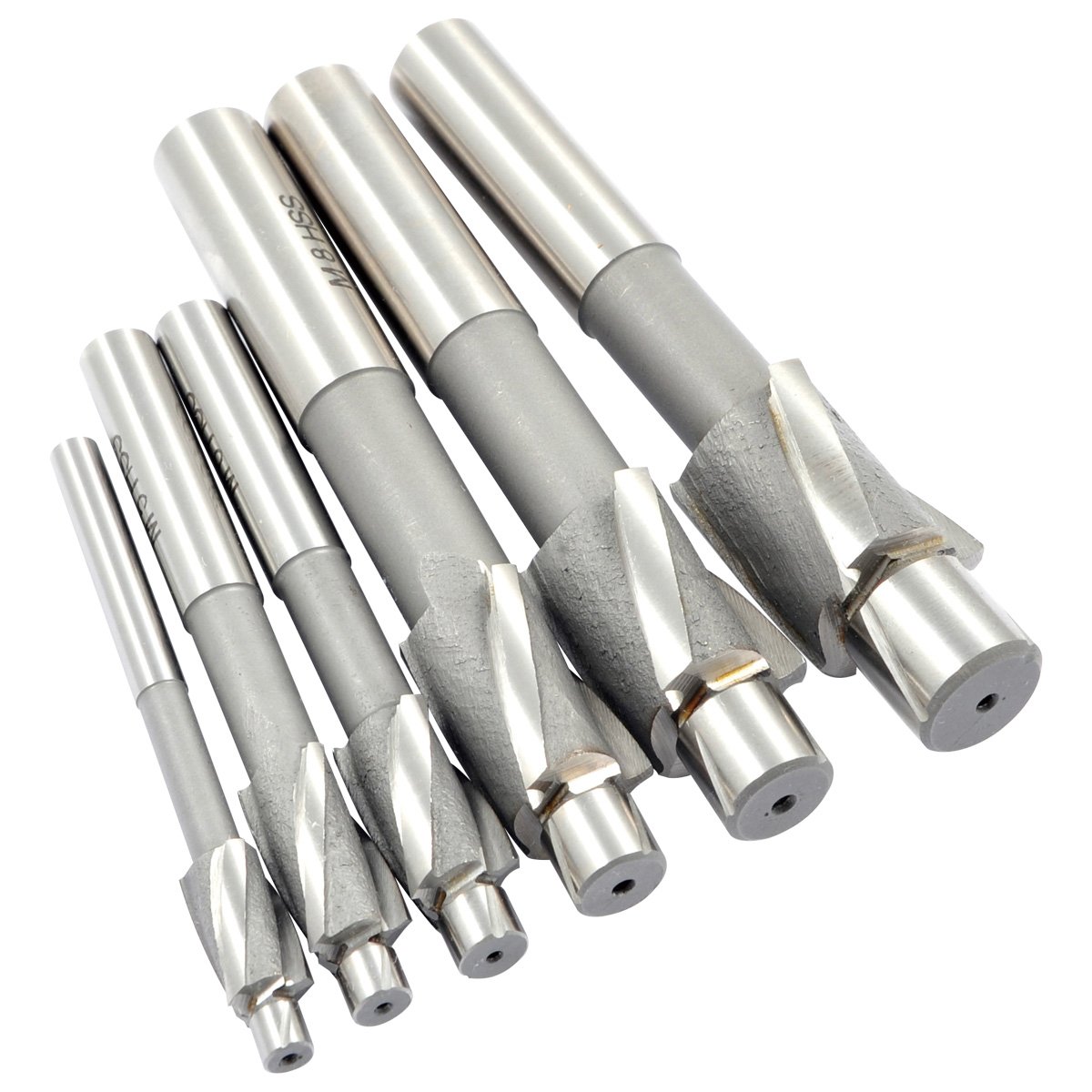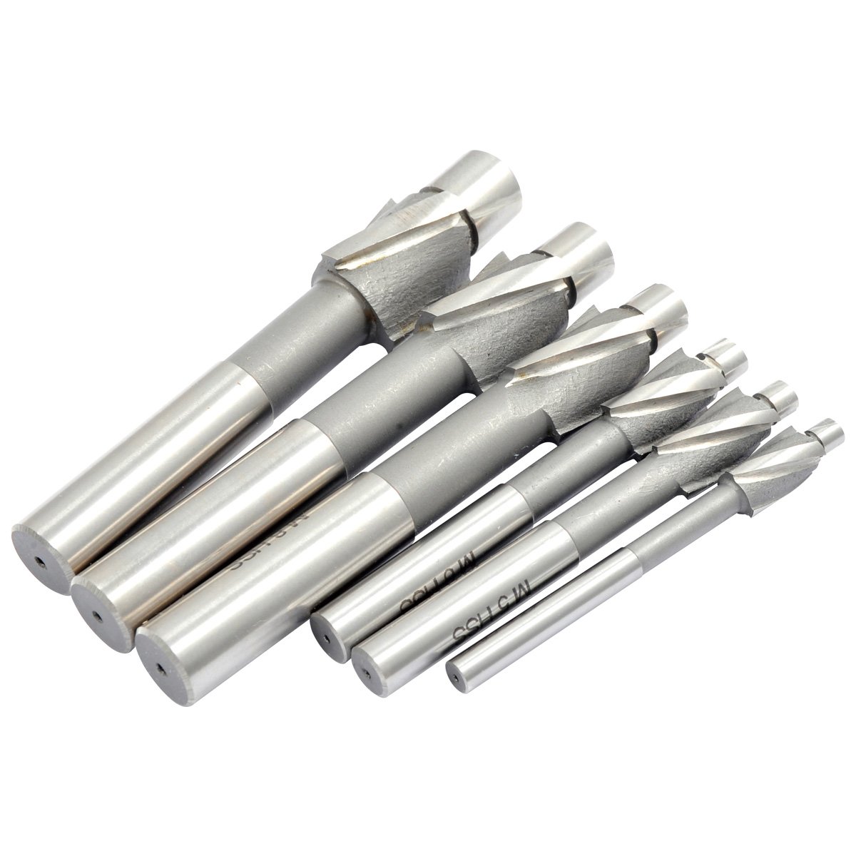 - 6 Piece M4-M12 HSS 3 Flute Straight Shank Solid Pilot Counterbore Set