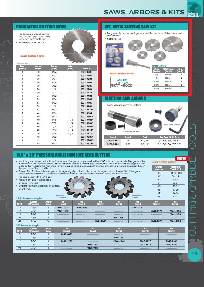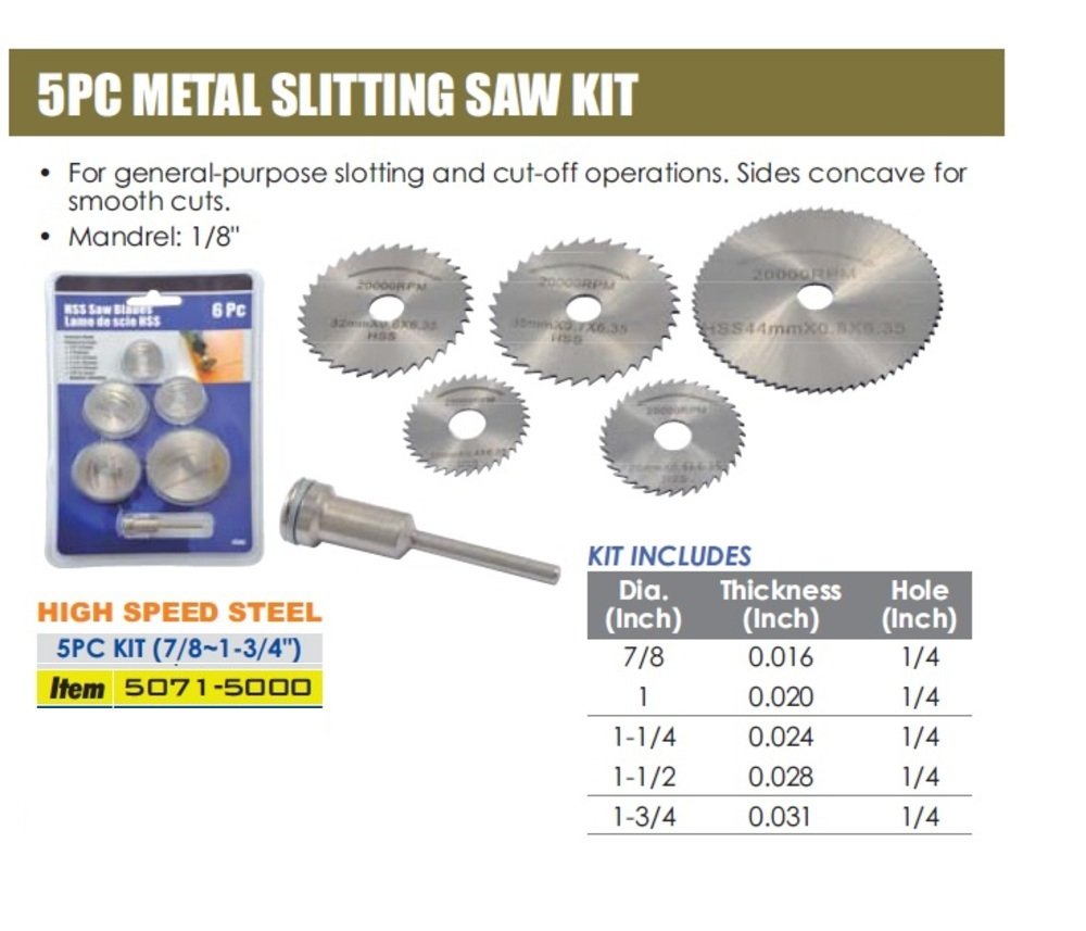 6PC SLITTING SAW WITH MANDREL SET (7/8 1 1-1/4&1-1/2 INCH) (SKU: 5071-5000)