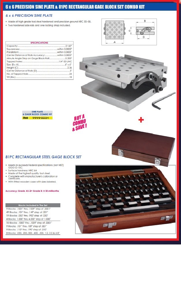 6 X 6″ SINE PLATE & 81 PIECE GAGE BLOCK SET (9999-0034) (SKU: 9999-0034)