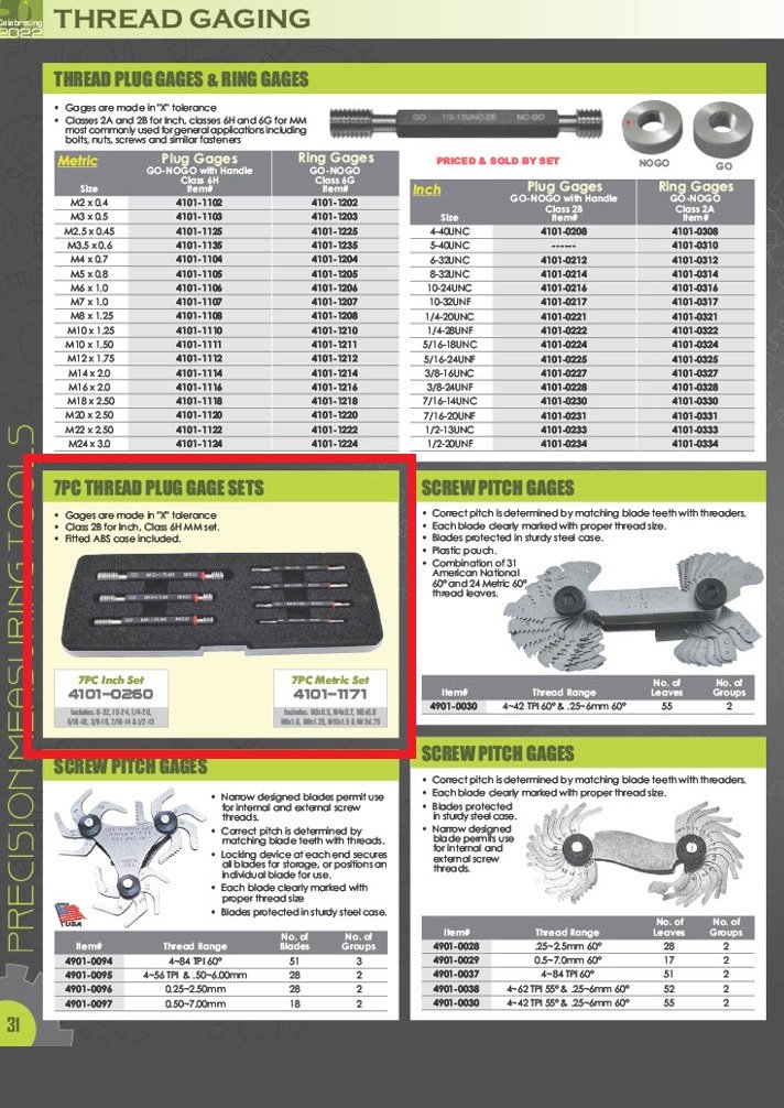 - Includes 8-32, 10-24, 1/4-20, 5/16-18, 3/8-16, 1/16-14, & 1/2-13