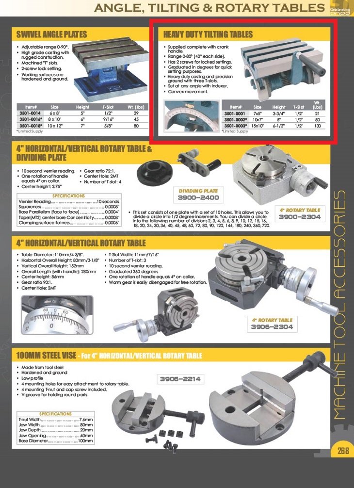 7 X 5″ TILTING TABLE WITH ADJUSTABLE HANDLE (3501-0001). Key features: 7″ (A) X 5″ (B) Tilting Table with Adjustable Handle; Supplied complete with a crank handle..