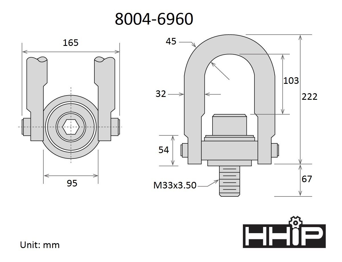 7,000 KG STANDARD U-BAR HOIST RING WITH M33 X 3.50 THREAD ( 8004-6960)