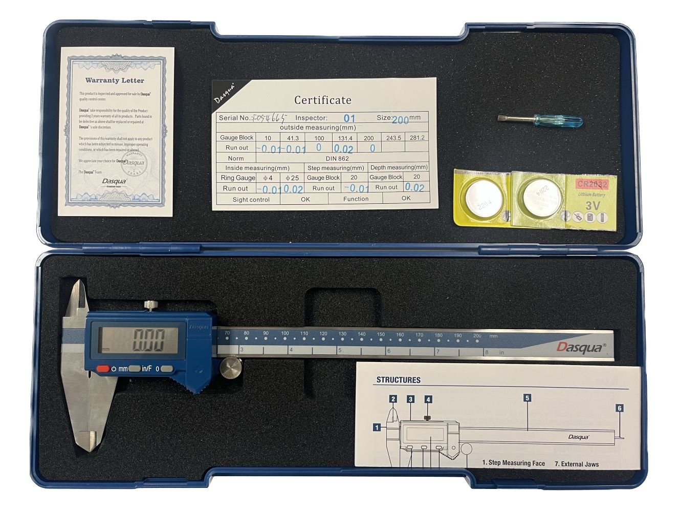 DASQUA 0-200MM/0-8 INCH IP54 WATERPROOF DIGITAL CALIPER (SKU: 2000-1010)