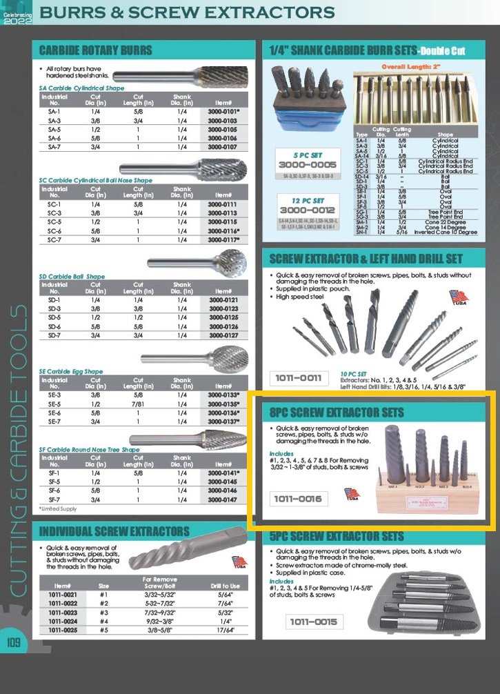 8 PIECE USA MADE SCREW EXTRACTOR SET (SKU: 1011-0016)