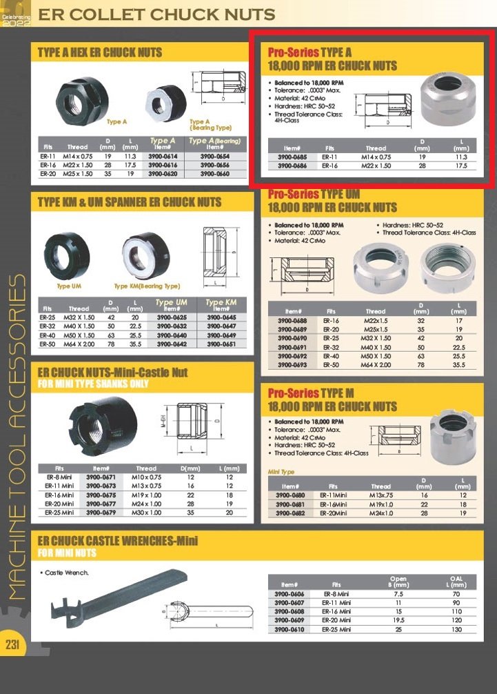 A-TYPE ER-16 COLLET CHUCK NUT (3900-0686) (SKU: 3900-0686)