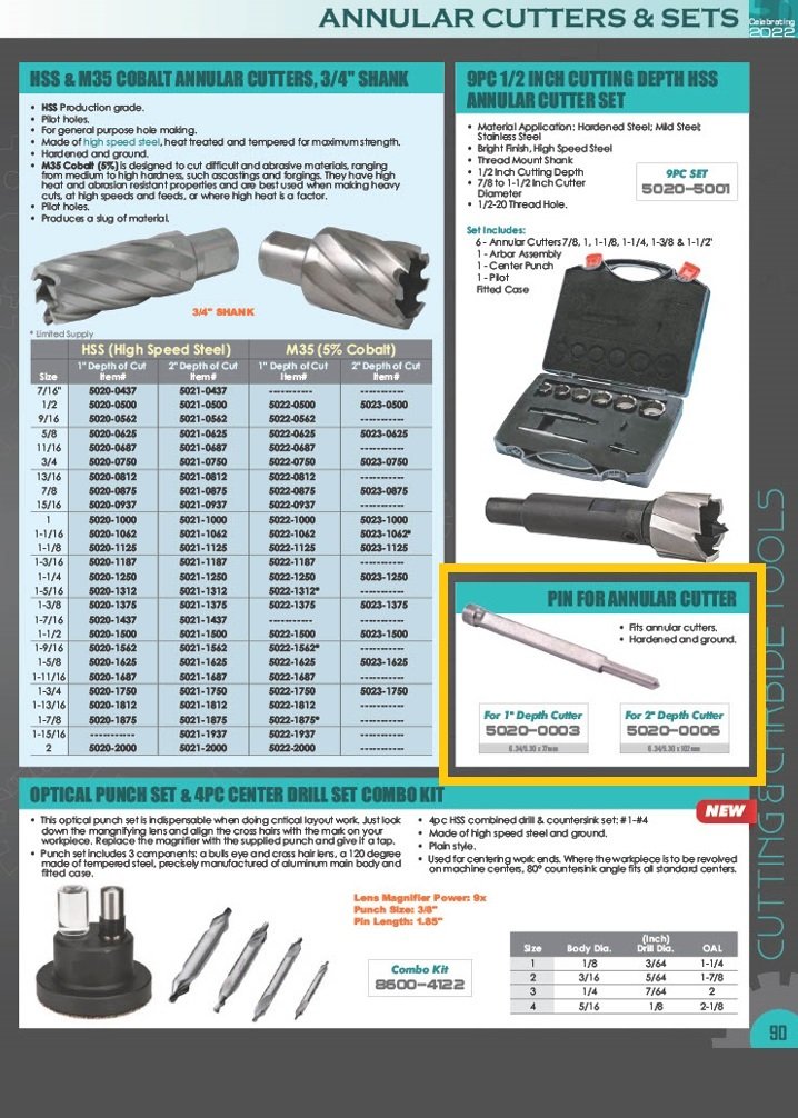 - Center Pin for Annular Cutter with 1″ Depth of Cut 6.34/5.3 X 77mm