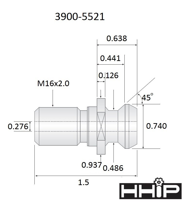 ANSI 1.5 X .74 45 DEGREE M16 X 2.0 COOLANT THRU RETENTION KNOB (3900-5521) (SKU: 3900-5521)