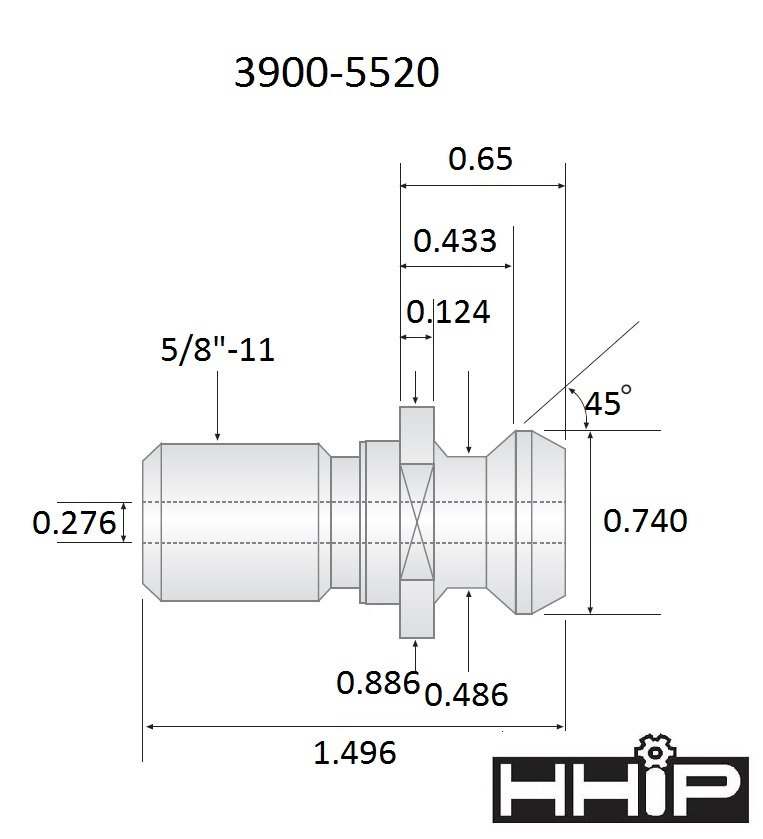ANSI CAT40 X 45 DEGREE 5/8-11 COOLANT THRU PULL STUD PS11122 FITS FADAL (3900-5520) (SKU: 3900-5520)