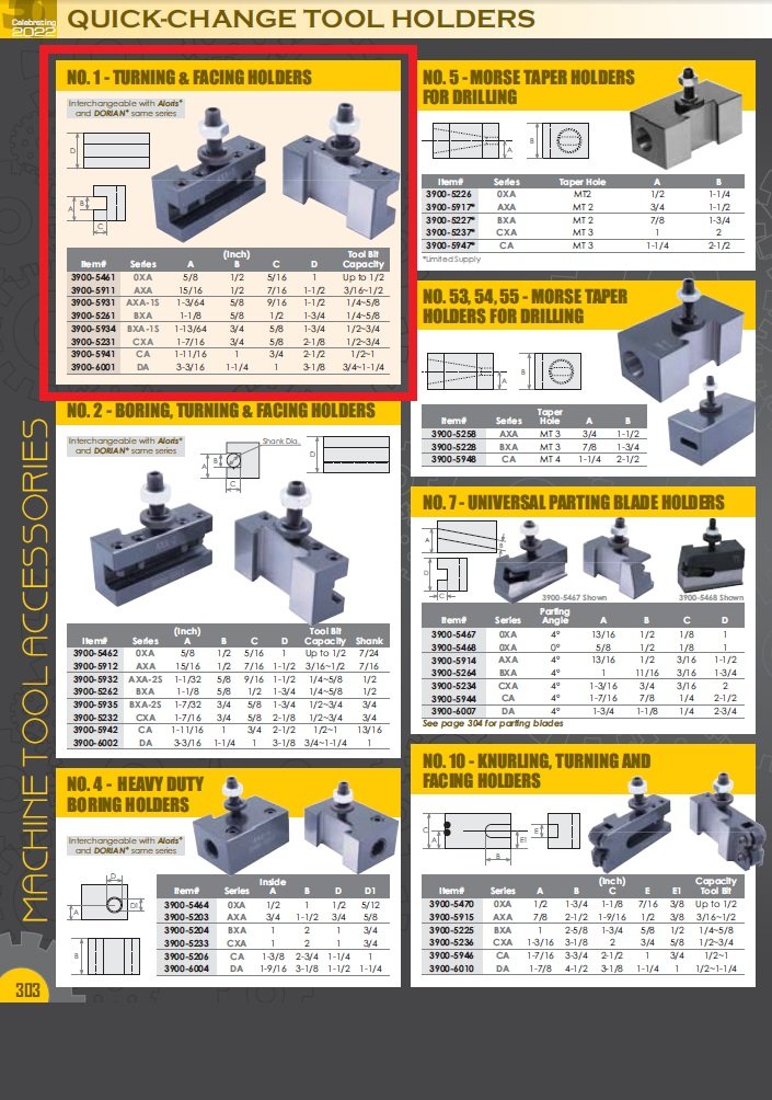 - Fits the AXA-#100 series tool post.