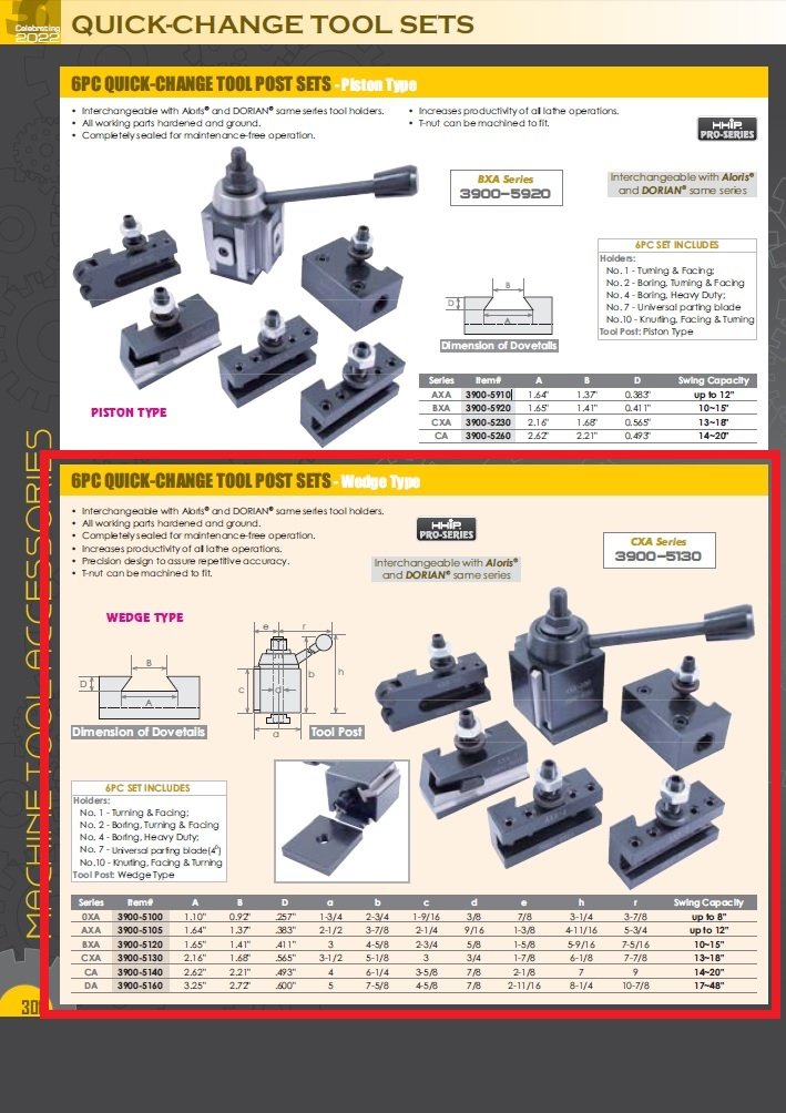 - CA 6 Piece Tool Post Set – Wedge Type 251-444