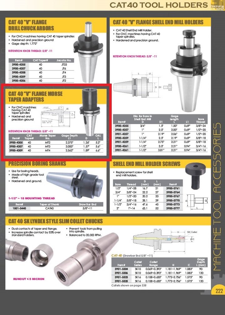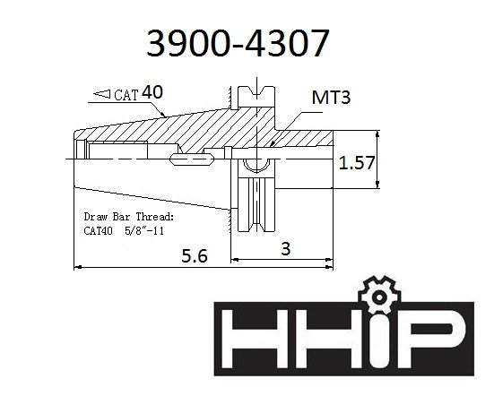 CAT 40 V-FLANGE TO MT3 TANG END MORSE TAPER ADAPTER (3900-4307). Key features: CAT 40 V-Flange to MT3 Tang End Morse Taper Adapter; For CNC machines with CAT 40 taper spindles..