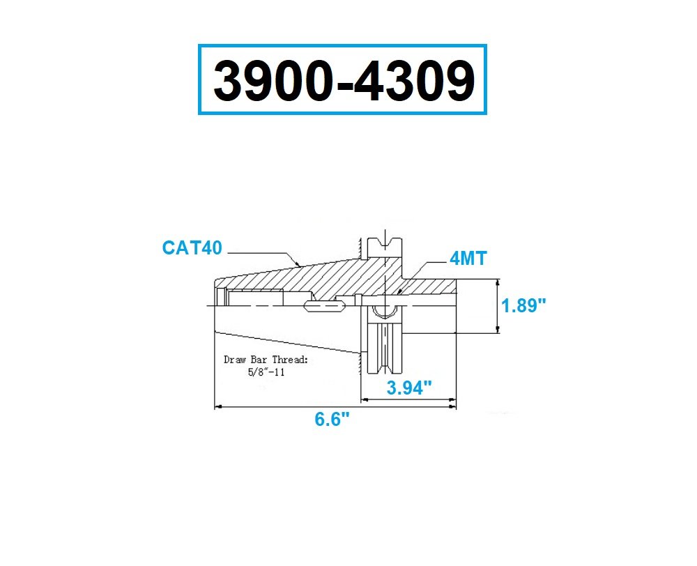 CAT 40 V-FLANGE TO MT4 TANG END MORSE TAPER ADAPTER (3900-4309). Key features: CAT 40 V-Flange to MT4 Tang End Morse Taper Adapter; For CNC machines with CAT 40 taper spindles..