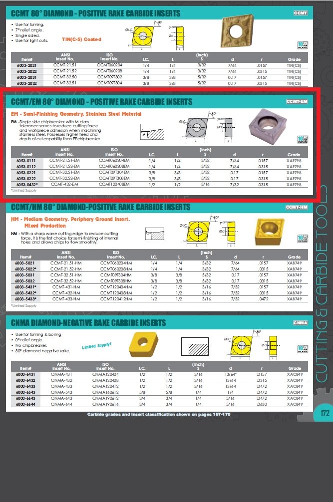 - CCMT 21.51-EM 80 Degree Coated Carbide Insert