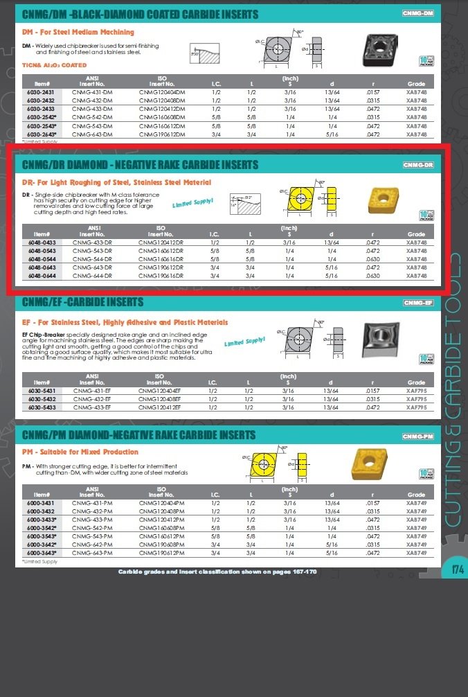 - CNMG-644-DR Negative Rake Coated Carbide Insert