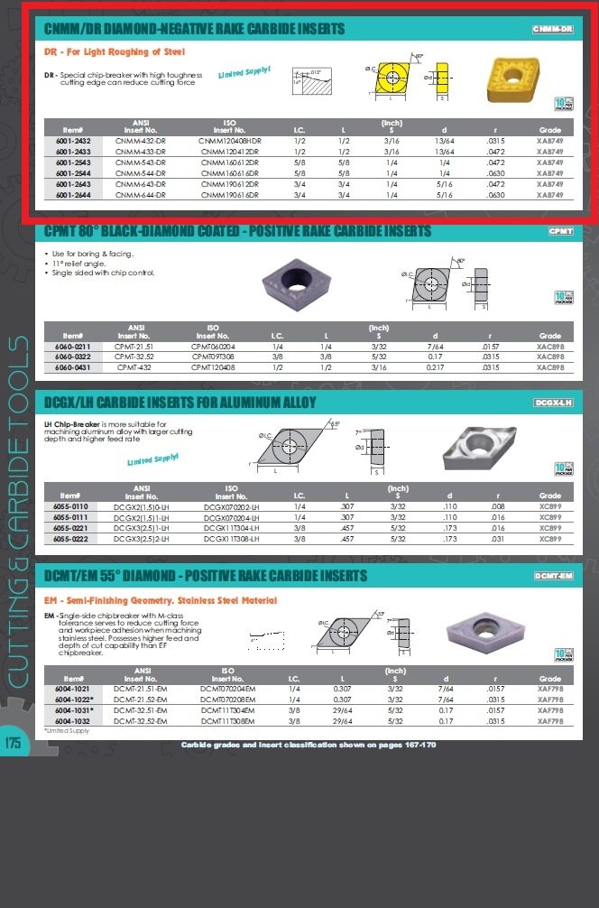 - CNMM-543-DR Negative Rake Coated Carbide Insert
