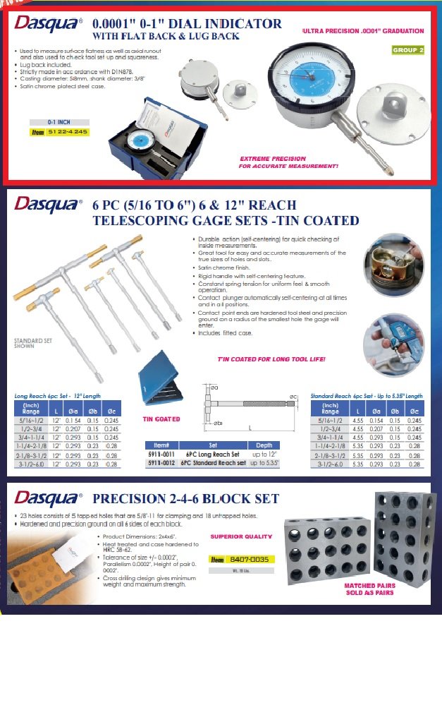 - Dasqua 0.0001″ Ultra Precision 0-1″ Lug Back Dial Indicator