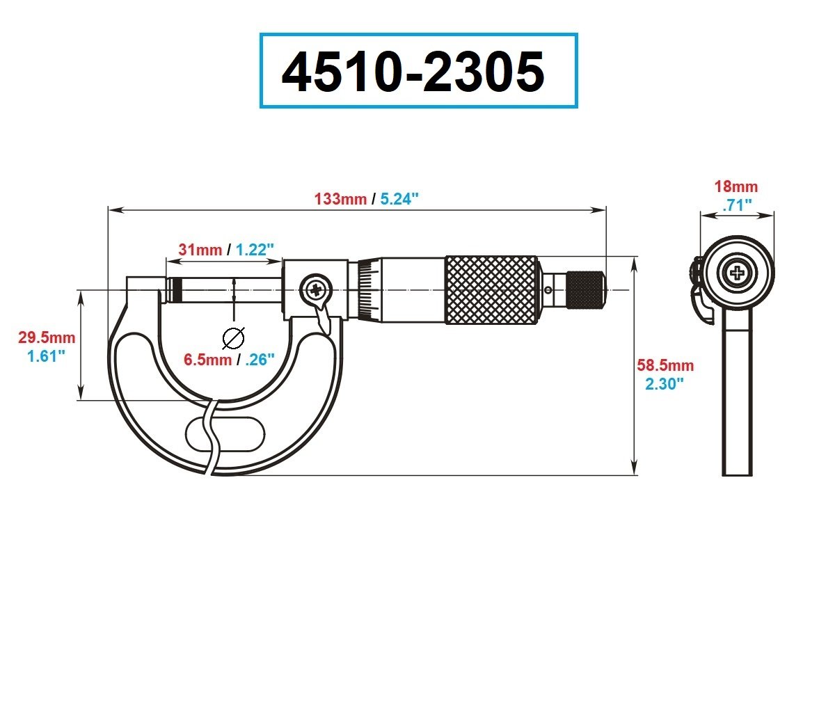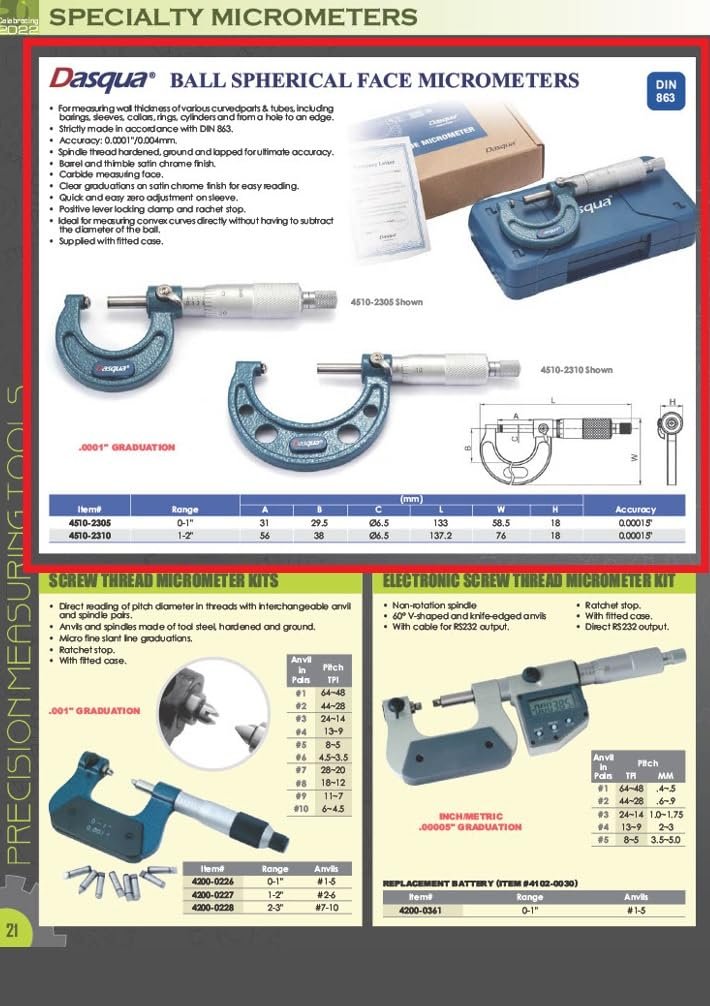 DASQUA 0-1″ BALL SPHERICAL FACE MICROMETER (4510-2305) (SKU: 4510-2305)