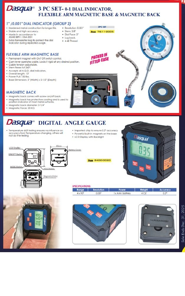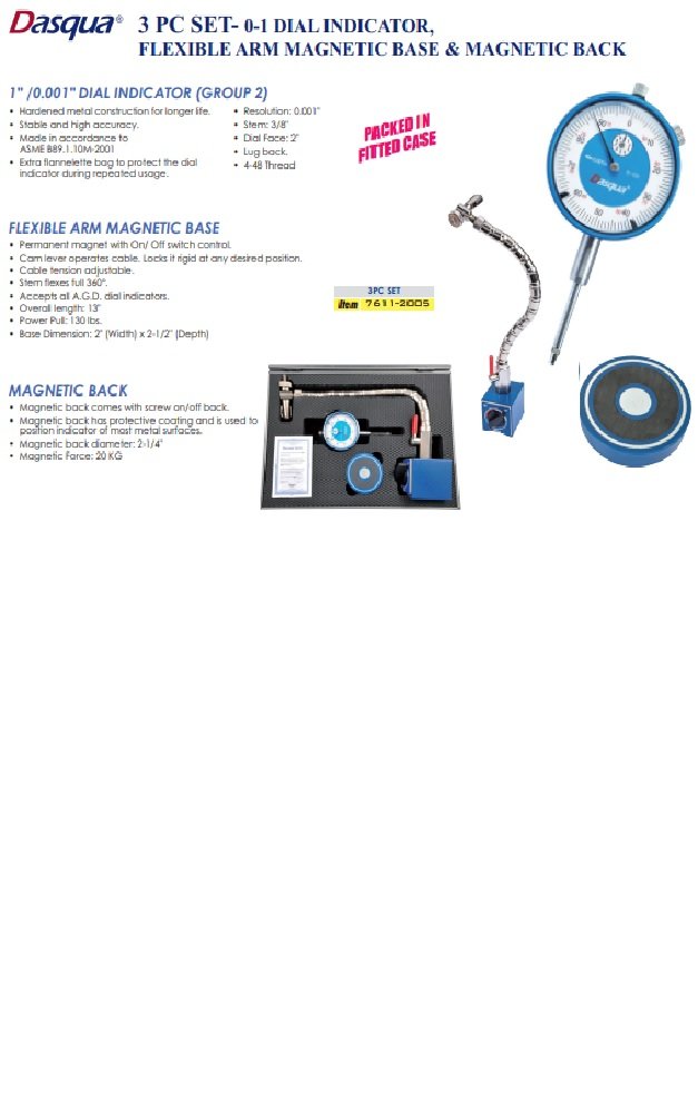 DASQUA 0-1″ INDICATOR WITH MAGNETIC BACK & FLEX CHROME MAG BASE (7611-2005)